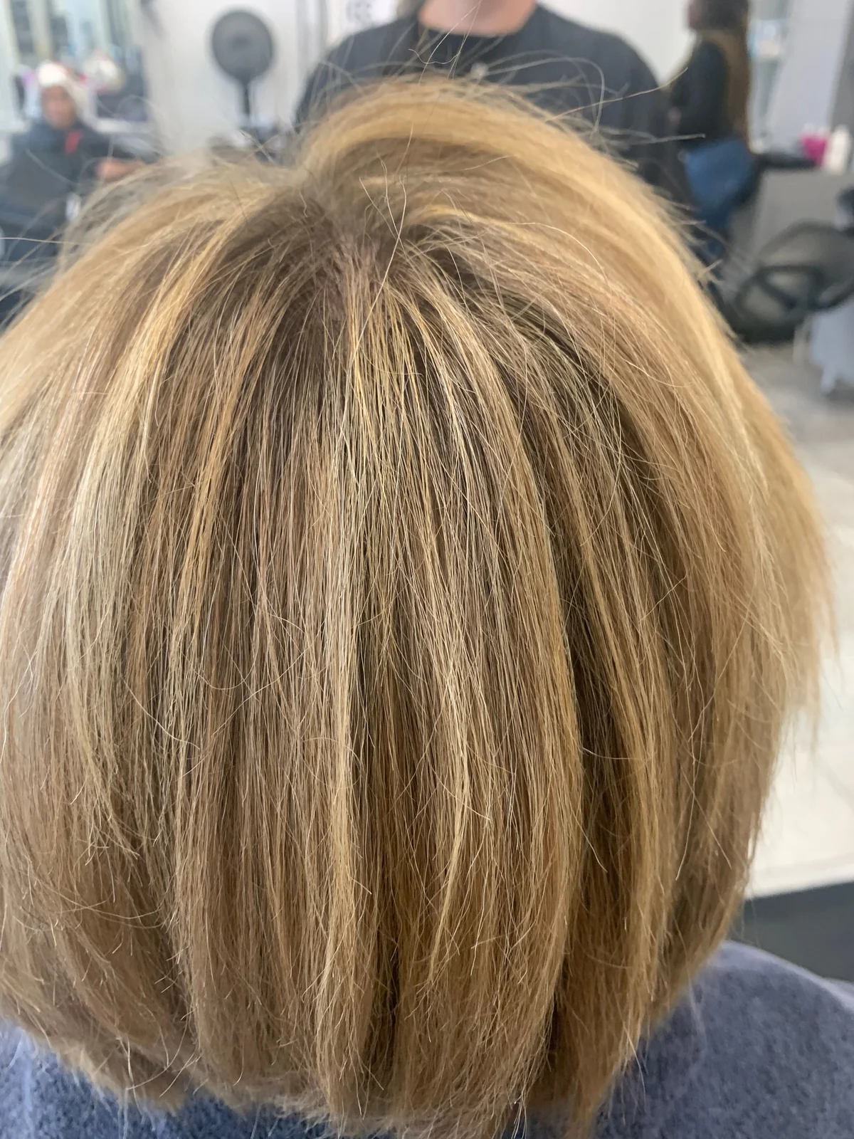 Jeg klippet håret (det trengte det virkelig), tok litt striper og farget etterveksten. Frisøren brukte denne masken i håret mitt – og jeg elsket hvordan det føltes etterpå. Jeg er helt forelsket i denne masken!