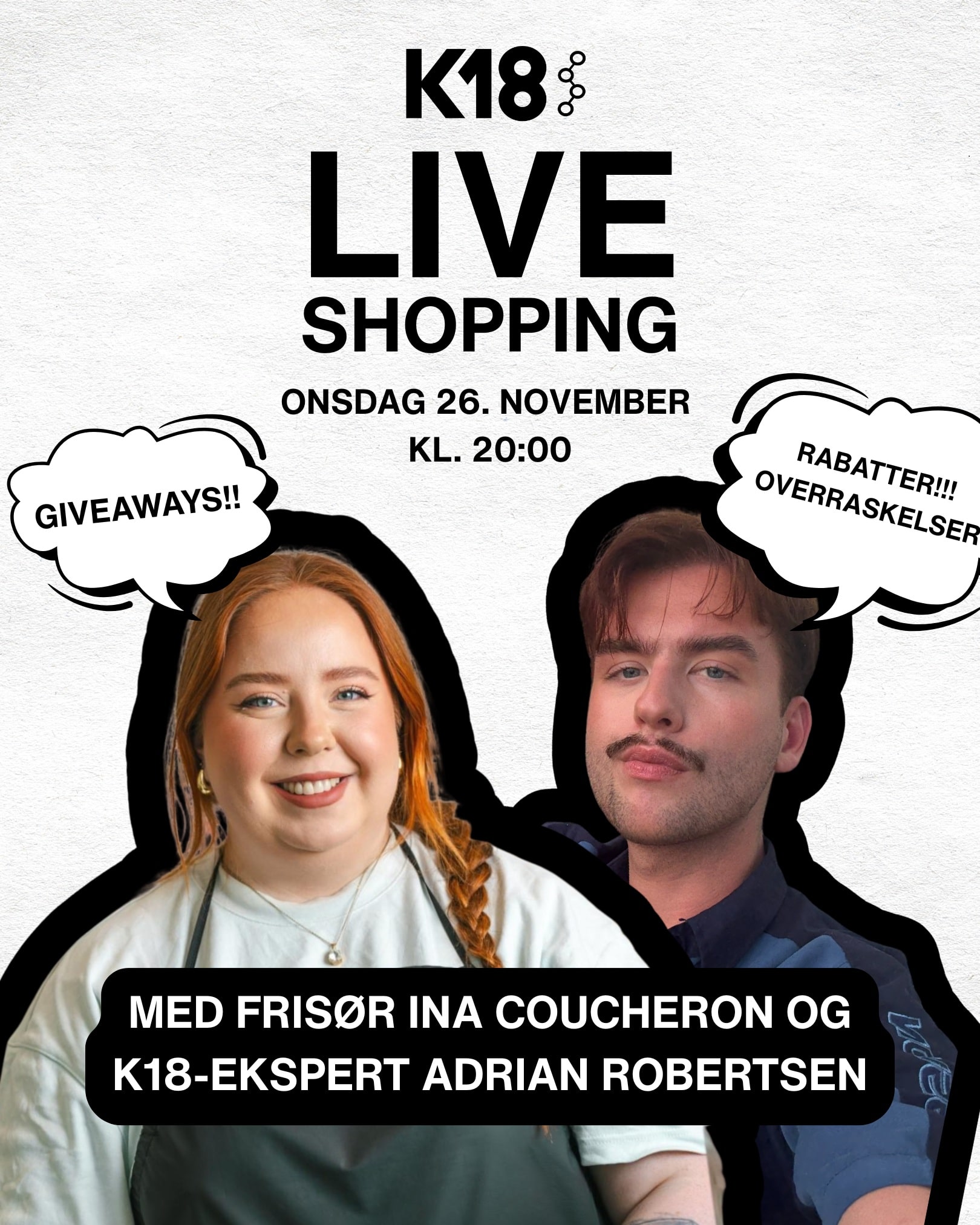 Sammen viser de hvordan du får mest mulig ut av K18-produktene – og svarer på spørsmål fra seerne underveis.
